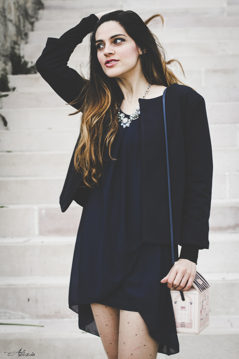 Per l'outfit ho indossato un vestitino e una giacca di Blue sand entrambe comprate a Milano nel negozio vicino piazza Duomo, il colore blu torna nuovamente protagonista, mentre la particolarissima borsa è di Accessorize e anche con lei è stato amore a prima vista *_*